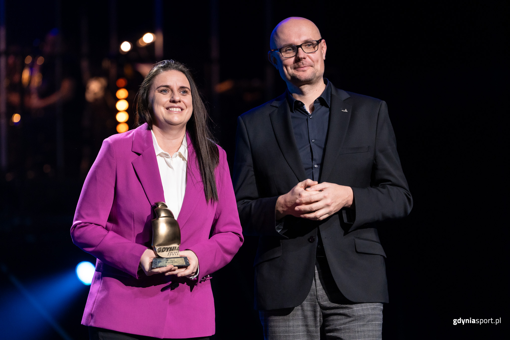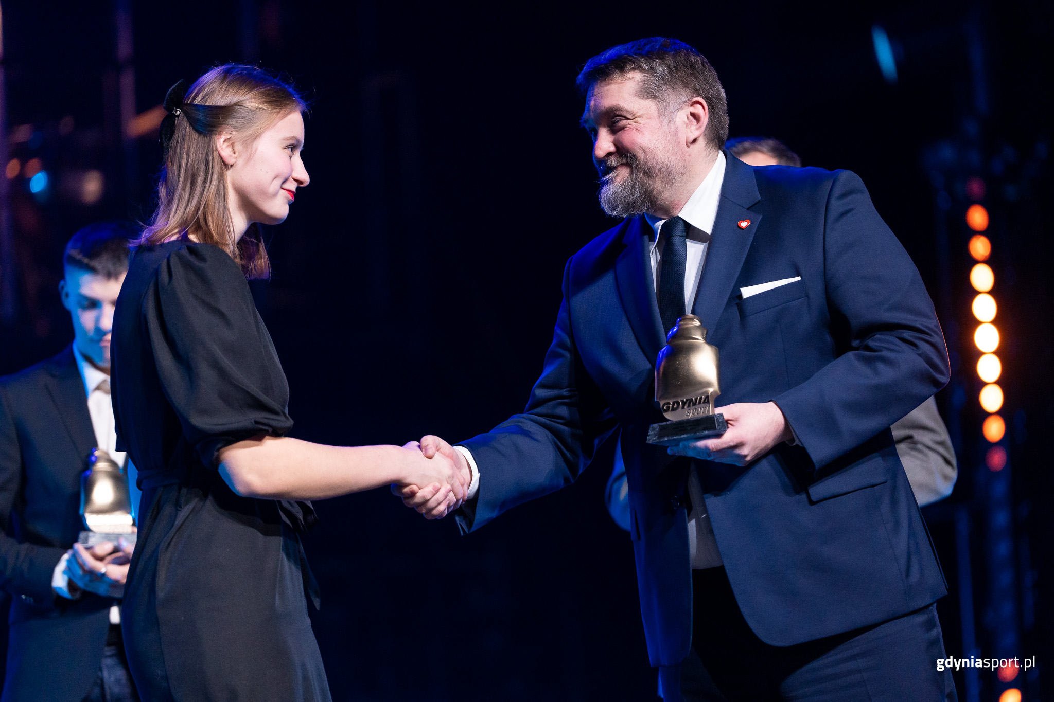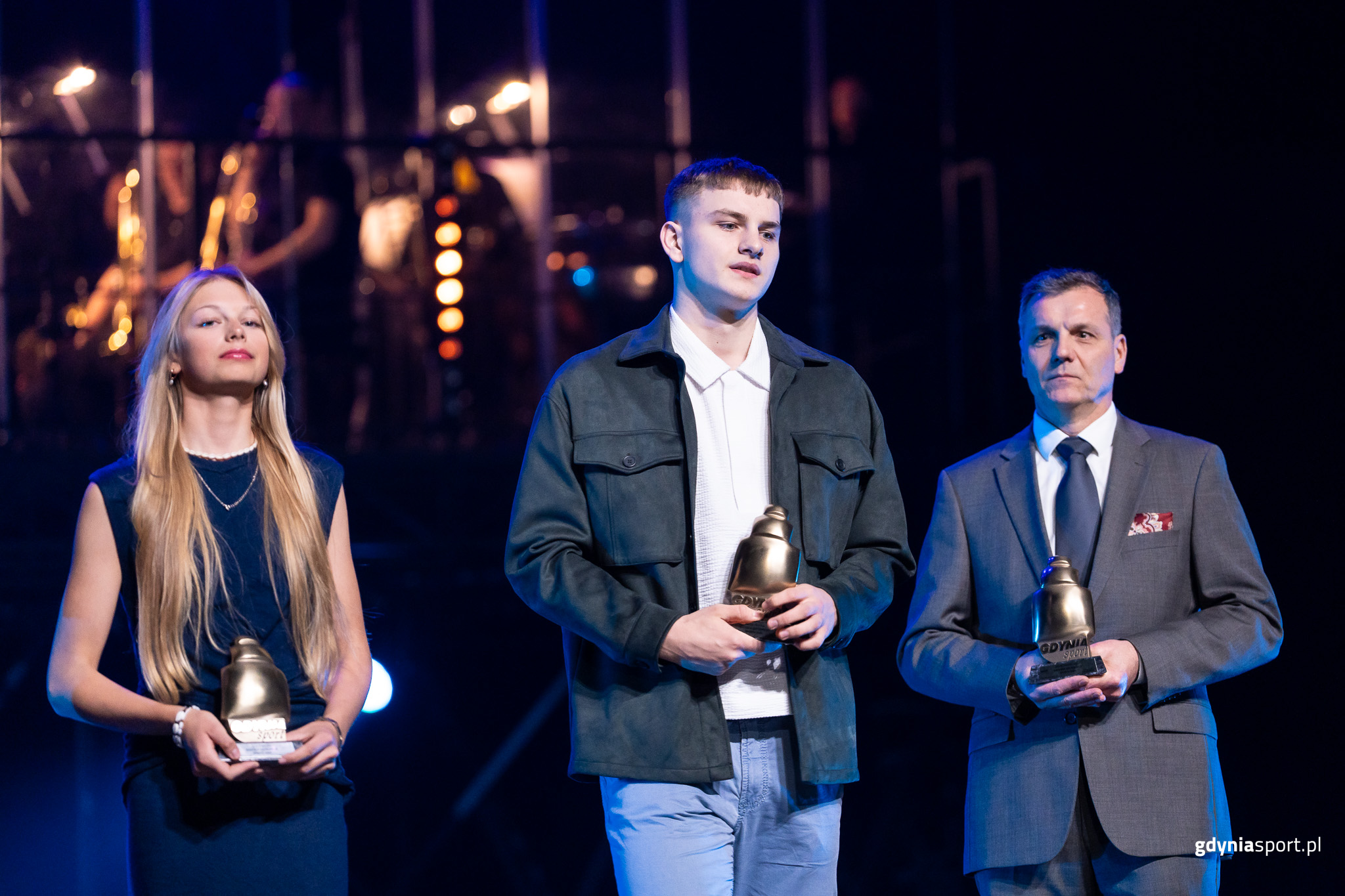 XXVI Gala Gdyńskiego Sportu za nami. Statuetki dla najlepszych sportowców powędrowały do Alicji Tutkowskiej i Przemysława Zamojskiego. Trenerem Roku została Anna Talarczyk, a Zespołem Roku – VBW Gdynia. Już po raz 26. statuetki nazywane przez wielu „złotymi żaglami” trafiły w ręce najwybitniejszych reprezentantów Gdyni minionego roku. Uroczysta gala po ubiegłorocznym powrocie znów zagościła w Teatrze Muzycznym im. Danuty Baduszkowej. To tu, przy akompaniamencie orkiestry pod dyrekcją Dariusza Różankiewicza, uraczeni talentem wybitnych aktorów i muzyków, mogliśmy poznać najlepszych z najlepszych gdyńskiego sportu. Sportowiec Roku 2024: Żeglarstwo i 3x3 Koszykówka i żeglarstwo – te dwie dyscypliny są niemal stałymi elementami repertuaru Gali Gdyńskiego Sportu. W minionym roku po triumf sięgnęły gdyńskie koszykarki i reprezentantki Polski – Julia Bazan i Bożena Puter, a statuetkę sportowca otrzymał żeglarz Mateusz Gwóźdź. Tym razem role odwróciły się, a po najwyższe laury sięgnęli… żeglarka i koszykarz.Alicja Tutkowska (Yacht Klub Polski Gdynia) wśród jej licznych osiągnięć w roku 2024 znalazły się między innymi złoty medal Młodzieżowych Mistrzostw Świata World Sailing Youth oraz złoty medal Mistrzostw Europy 29er European Championship 2024. Dodatkowo na arenie krajowej zdobyła ona tytuł Mistrzyni Polski podczas Mistrzostw Polski Juniorów 2024.Na zdjęciu Alicja Tutkowska Sportowiec Roku 2024 // fot. Dawid LinkowskiJej sukces jest tym większy, że rok temu tym samym miejscu odbierała nagrodę jako Nadzieja Gdyńskiego Sportu. To najlepiej pokazuje, co w zawodowym sporcie znaczy 12 miesięcy ciężkiej i systematycznej pracy. Przemysław Zamojski to bez wątpienia zawodnik utytułowany – 10-krotny Mistrz Polski w koszykówce, trzykrotny zdobywca Pucharu Polski, wielokrotny reprezentant Polski w koszykówce 5x5. Od kilku lat poświęcił się 3x3 i reprezentował nasz kraj podczas igrzysk olimpijskich w Japonii oraz zeszłorocznej edycji rozgrywanej we Francji. Teraz do jego kolekcji dołączy również gdyńska statuetka. Na zdjęciu Przemysław Zamojski Sportowiec Roku 2024 // fot. Dawid Linkowski Wspólnie z Reprezentacją Polski Przemysław Zamojski zdobył w minionym roku szóste miejsce podczas XXXIII Letnich Igrzyskach Olimpijskich w Paryżu 2024. Popularny „Zamoj” był liderem ekipy w składzie: Filip Matczak, Adrian Bogucki oraz Michał Sokołowski, która przykuła do telewizorów i rozbudziła medalowe ambicje w wielu milionach Polaków. Trener Roku 2024: Wygrać wszystkoTytuł Trenera Roku 2024 powędrował do Anny Talarczyk, szkoleniowca Gdyńskiego Towarzystwa Koszykówki, która poprowadziła drużynę VBW GTK Gdynia do wyjątkowego sezonu pełnego sukcesów. Na zdjęciu od lewej: Anna Talarczyk, szkoleniowiec Gdyńskiego Towarzystwa Koszykówki i Bartłomiej Austen wiceprezydent Gdyni // fot. Dawid LinkowskiPod jej wodzą zespół sięgnął po trzy najwyższe trofea: Młodzieżowy Puchar Polski U19, Mistrzostwo Polski U19 oraz Mistrzostwo Polski 1 Ligi Kobiet. Te osiągnięcia są dowodem na doskonałe przygotowanie, strategiczne myślenie i ogromne zaangażowanie, które Anna Talarczyk wnosi do swojej pracy trenerskiej. Drużyna Roku 2024: Gdynia to jest potęga Słynne zdanie, wykrzykiwane przez wieloletniego prezesa klubu, „Gdynia to jest potęga” można było usłyszeć po finałowym spotkaniu o trzecie w Orlen Basket Lidze Kobiet w sezonie 2023/24 koszykarek VBW Gdynia. Drużyna roku VBW Gdynia // fot. Dawid LinkowskiZespół, którego medale trudno wręcz policzyć udanie reprezentował nasze miasto również w II rundzie pucharowej FIBA EuroCup. Sportowa Impreza Roku 2024: Mistrzostwa Europy U20 Mężczyzn w koszykówce EuroBasket U20 mężczyzn to najważniejszy młodzieżowy turniej koszykarski w Europie, organizowany nieprzerwanie od 1992 roku. Debiut Gdyni w roli gospodarza okazał się wyjątkowo udany – 56 emocjonujących spotkań, znakomite recenzje od zawodników, federacji i ekspertów, wielkie sportowe emocje oraz perfekcyjna organizacja. Ukoronowaniem wydarzenia była świetna postawa naszej reprezentacji, która zajęła ósme miejsce, osiągając najlepszy wynik w historii Polski w tej kategorii wiekowej i budząc nadzieję na świetlaną przyszłość polskiej koszykówki. Wydarzenie to po raz kolejny potwierdziło wyjątkowe zdolności organizacyjne Gdyni, która udowodniła, że potrafi sprostać wyzwaniom największych imprez sportowych na światowym poziomie. Nadzieje Gdyńskiego Sportu 2024: Przyszłość należy do nich Pływanie, boks, judo, koszykówka i żeglarstwo – to dyscypliny, w których wyróżnili się młodzi sportowcy nominowani do nagrody „Nadzieje Gdyńskiego Sportu”. W gronie laureatów znaleźli się reprezentanci Polski, medaliści mistrzostw krajowych i międzynarodowych, a także rekordziści, którzy już teraz imponują osiągnięciami i talentem.Na zdjęciu od lewej: Olga Wietek, Jan Zamojski, Alicja Tutkowska, Julia Nagórska // fot. Dawid LinkowskiBłażej Dworakowski (pływanie) – Klub Sportowy Delfin Gdynia – reprezentant Polski juniorów w najważniejszych zawodach pływackich w 2024 roku. Zdobył srebrny medal na 100 metrów w stylu motylkowym oraz brązowy medal na 200 m stylem motylkowym podczas Mistrzostw Polski Juniorów 17-18 lat. Zajął szóste miejsce w sztafecie 4x100 metrów w stylu zmiennym, osiągając rekord Polski juniorów 17-letnich, podczas Mistrzostw Europy Juniorów. Został rekordzistą województwa pomorskiego juniorów 17- i 18-letnich na dystansach 100 i 200 m stylem motylkowym.Oleksandr Kopach (boks)– Klubu Sportowy Sako - zdobywca złotego medalu i tytułu Mistrza Polski w wadze 71 kg na XXXI Mistrzostwach Polski Juniorów w boksie olimpijskim.Dominika Kuźma-Ebel (judo) – Uczniowski Klub Sportowy Galeon Gdynia – w 2024 roku wywalczyła liczne tytuły na arenie krajowej i międzynarodowej, ta