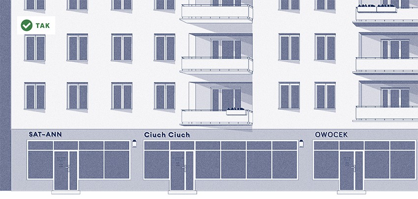 Szyldy i reklamy regulowane są w miejscowych planach zagospodarowania przestrzennego lub w tzw. uchwałach krajobrazowych. W zależności od sytuacji wymagają zgłoszenia lub pozwolenia na budowę. Szyld to wizytówka lokalu usługowego i budynku, w którym się mieści. Kształt, wielkość, kolorystyka i forma szyldów i reklam oraz miejsce ich umieszczenia na budynku muszą być dostosowane do architektury budynku. Kształt, wielkość, kolorystykę i formę szyldów i reklam oraz miejsce ich umieszczenia na budynku dostosuj do architektury budynku i jego funkcji. Nie montuj szyldów i tablic reklamowych na budynku w sposób zakrywający lub naruszający istotne elementy wystroju architektonicznego elewacji lub w sposób zakłócający naturalne podziały i rytmy architektoniczne. Dopuszcza się po jednym szyldzie na lokal usługowy w parterze. Szyldy lokalizuj poniżej pierwszego piętra, na jednej wysokości i w zbliżonej wielkości, w obrębie budynku. W budynku, w którym prowadzona jest liczna działalność usługowa zastosuj małe szyldy wizytówkowe zgrupowane i uporządkowane przy wejściu do budynku. Nie umieszczaj tablic reklamowych w formie reklamy wyklejanej w świetle drzwi i witryn lokalu usługowego, z wyłączeniem haseł reklamowych w formie liter bez tła, o wysokości nie większej niż 15 cm i zajmującej maksymalnie 25% witryny sklepowej; nie używaj kolorów jaskrawych. Wersja poprawna / wersja niepoprawna (przesuń suwak, aby porównać) Do pobrania Od strony ulicy. Gdyński poradnik dobrych praktyk remontowych pdf2333kb Opublikowano: 07.06.2023 12:00 Autor: Paweł Jałoszewski (pawel.jaloszewski@gdynia.pl)