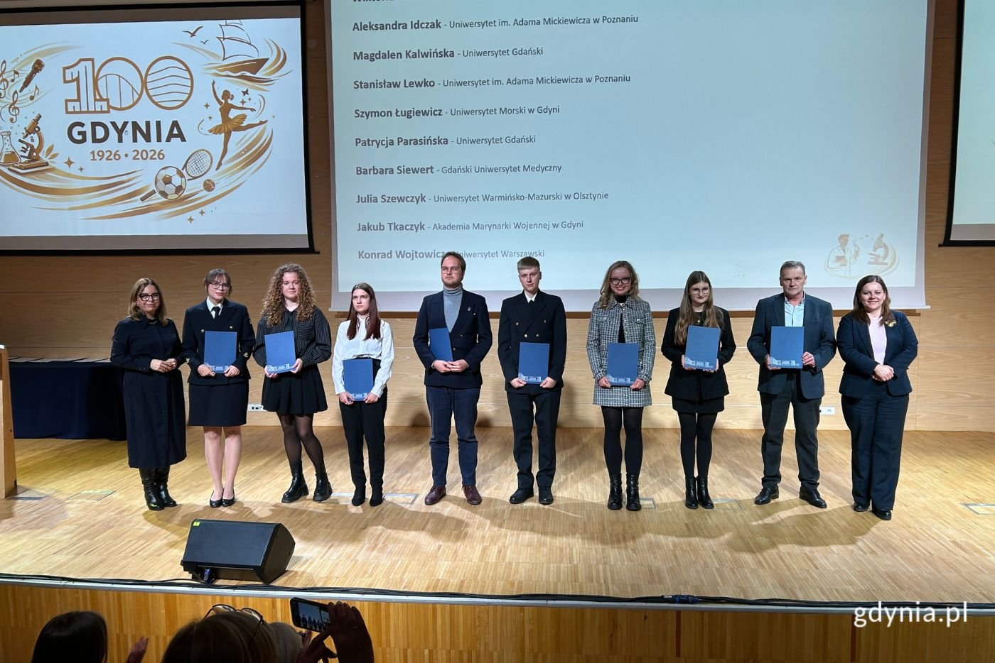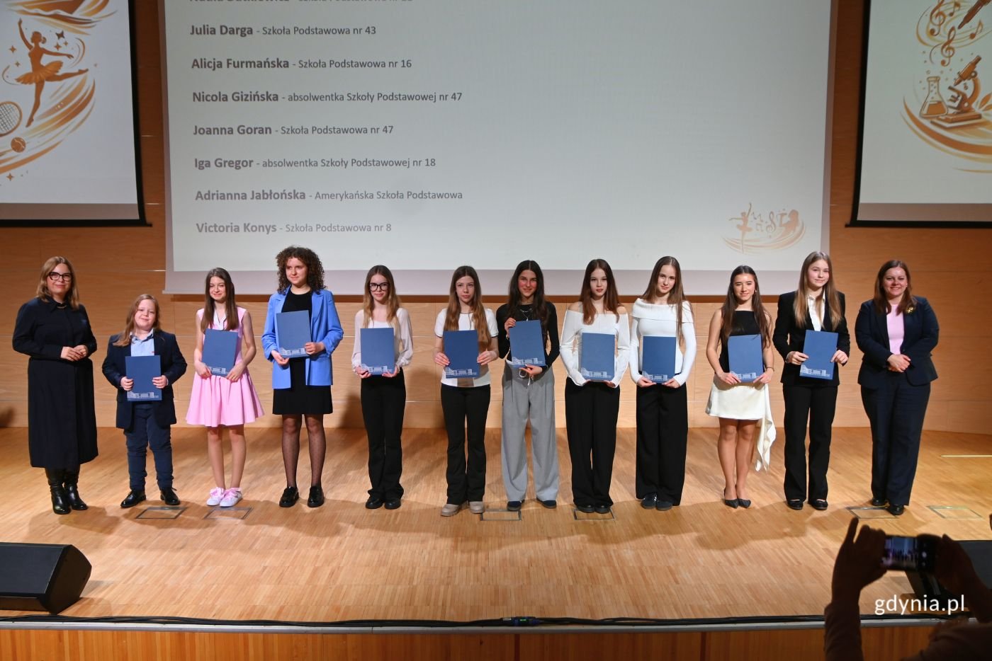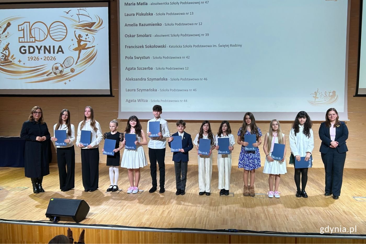 Zdolni, kreatywni i pracowici – taka jest gdyńska młodzież. Podczas uroczystej gali uczennice, uczniowie, a także studentki i studenci odebrali stypendia za wybitne osiągnięcia naukowe, artystyczne i sportowe. Ponadto piątkowe wydarzenie uświetniły występy wokalistek i wokalistów z Młodzieżowego Domu Kultury. Gala wręczenia stypendiów to wyjątkowa chwila dla całego środowiska edukacyjnego, bowiem doceniana jest codzienna praca i wysiłek, który młodzież wkłada w rozwój swoich talentów i zainteresowań. Wręczaliśmy stypendia za wyjątkowe osiągnięcia naukowe, sportowe i artystyczne. Niesamowita młodzież, z której możemy być dumni i której możemy tylko pogratulować i podziękować za to, jak ciężką pracę wkładają w szlifowanie swoich talentów – mówi Aleksandra Kosiorek, prezydent Gdyni. – Podziękowania trafiły również do rodziców, dziadków, nauczycieli, którzy na co dzień pracują z naszą młodzieżą, bo tak naprawdę to jest przyszłość naszego miasta. Dziękujemy wszystkim, którzy wkładają wytężoną pracę w osiągnięcia naszych dzieci. Wideo i montaż: Patryk Zaputowicz Wręczenie stypendiów młodym, gdyńskim talentom to wyjątkowy moment. Nie tylko możemy się spotkać, pogratulować, ale także zobaczyć, jaki potencjał tkwi w młodym pokoleniu, w osobach, które mieszkają i uczą się w naszym mieście – dodaje Oktawia Gorzeńska, wiceprezydentka Gdyni. – Dołączam się do najlepszych życzeń pani prezydent dla uczennic i uczniów, rodziców, nauczycieli i nauczycielek, dziadków i babć, bo to zawsze jest zbiorowy, rodzinny wysiłek. Wszystkiego najlepszego. W tym roku stypendia za wybitne osiągnięcia sportowe, artystyczne i naukowe otrzymało 136 osób.Stypendia za wybitne osiągnięcia naukowe otrzymali uczennice i uczniowie szkół podstawowych: Michał Andrzejewski, absolwent Szkoły Podstawowej nr 18, Ewa Fortuna, uczennica Pierwszej Społecznej Szkoły Podstawowej, Maksymilian Gliński, absolwent Szkoły Podstawowej nr 34 z Oddziałami Integracyjnymi, Ryszard Grabowski, absolwent Szkoły Podstawowej nr 34 z Oddziałami Integracyjnymi, Norbert Herba, absolwent Szkoły Podstawowej nr 47, Jan Janczuk, absolwent Katolickiej Szkoły Podstawowej im. św. Jana Pawła II, Szymon Kołatka, uczeń Szkoły Podstawowej nr 26, Wanda Kowalska, uczennica Szkoły Podstawowej nr 47, Oskar Majewski-Krakowski, uczeń Pierwszej Społecznej Szkoły Podstawowej, Samuel Kuna, uczeń Szkoły Podstawowej nr 37, Bianka Lidke, uczeń Szkoły Podstawowej nr 17, Adam Łubianka, absolwent Szkoły Podstawowej nr 10 w Inowrocławiu, Piotr Łutek, uczeń Szkoły Podstawowej nr 16, Lucjanna Matela, uczennica Pierwszej Społecznej Szkoły Podstawowej, Maksymilian Moskot, absolwent Katolickiej Szkoły Podstawowej im. św. Jana Pawła II, Mikołaj Olejniczak, uczeń Pierwszej Społecznej Szkoły Podstawowej, Ignacy Poborca, uczeń Pierwszej Społecznej Szkoły Podstawowej, Małgorzata Potyraj, uczennica Pierwszej Społecznej Szkoły Podstawowej, Pola Ramocka, uczennica Szkoły Podstawowej nr 47, Mikołaj Rossa, uczennica Szkoły Podstawowej nr 26, Igor Sowa, absolwentka Szkoły Podstawowej nr 47, Filip Stanisławczyk, uczeń Pierwszej Społecznej Szkoły Podstawowej. Stypendia naukowe dla uczennic i uczniów szkół ponadpodstawowych otrzymali: Helena Barska, uczennica III Liceum Ogólnokształcącego z Oddziałami Dwujęzycznymi, Kornelia Bernatowicz, uczennica Zespołu Szkół Hotelarsko-Gastronomicznych, Maksymilian Dobrowolski, uczeń III Liceum Ogólnokształcącego z Oddziałami Dwujęzycznymi, Katarzyna Drózda, uczennica VI Liceum Ogólnokształcącego, Tomasz Gerka, uczeń VI Liceum Ogólnokształcącego, Julia Gojdź, uczennica III Liceum Ogólnokształcącego z Oddziałami Dwujęzycznymi, Laura Grafińska, uczennica VI Liceum Ogólnokształcącego, Radek Jarocki, uczeń III Liceum Ogólnokształcącego z Oddziałami Dwujęzycznymi, Mikołaj Kropidłowski, uczeń III Liceum Ogólnokształcącego z Oddziałami Dwujęzycznymi, Leon Kropiewnicki, uczeń III Liceum Ogólnokształcącego z Oddziałami Dwujęzycznymi, Franciszek Kuberka, uczeń III Liceum Ogólnokształcącego z Oddziałami Dwujęzycznymi, Jakub Kussowski, uczeń III Liceum Ogólnokształcącego z Oddziałami Dwujęzycznymi, Robert Łagidze, uczeń III Liceum Ogólnokształcącego z Oddziałami Dwujęzycznymi, Julia Madeja, uczennica III Liceum Ogólnokształcącego z Oddziałami Dwujęzycznymi, Antoni Nowosielski, uczeń III Liceum Ogólnokształcącego z Oddziałami Dwujęzycznymi, Nicolas Ostatek, uczeń Zespołu Szkół Hotelarsko-Gastronomicznych, Bogusz Pańczak, uczeń III Liceum Ogólnokształcącego z Oddziałami Dwujęzycznymi, Rafał Sawicki, uczeń III Liceum Ogólnokształcącego z Oddziałami Dwujęzycznymi, Dominika Sikorska, uczennica III Liceum Ogólnokształcącego z Oddziałami Dwujęzycznymi, Roch Sobczyński, uczeń III Liceum Ogólnokształcącego z Oddziałami Dwujęzycznymi, Nikodem Socha, uczeń III Liceum Ogólnokształcącego z Oddziałami Dwujęzycznymi, Mikołaj Stachowiak, uczeń III Liceum Ogólnokształcącego z Oddziałami Dwujęzycznymi, Zofia Szaciłło, uczennica III Liceum Ogólnokształcącego z Oddziałami Dwujęzycznymi, Krystian Szumlas, uczeń III Liceum Ogólnokształcącego z Oddziałami Dwujęzycznymi, Kornelia Wieczorek, uczennica III Liceum Ogólnokształcącego z Oddziałami Dwujęzycznymi, Jan Ząbkiewicz, uczeń III Liceum Ogólnokształcącego z Oddziałami Dwujęzycznymi. Stypendia artystyczne dla uczennic i uczniów szkół podstawowych otrzymali: Konstanty Bałandynowicz, uczeń Szkoły Podstawowej nr 16, Weronika Bielicka, uczennica Szkoły Podstawowej nr 42, Nadia Butkiewicz, uczennica Szkoły Podstawowej nr 21, Julia Darga, uczennica Szkoły Podstawowej nr 43, Alicja Furmańska, uczennica Szkoły Podstawowej nr 16, Nicola Gizińska, absolwentka Szkoły Podstawowej nr 47, Joanna Goran, uczennica Szkoły Pods