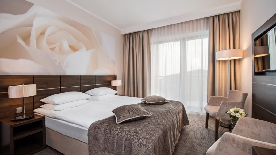 Różany Gaj to komfortowy, kameralny hotel położony bezpośrednio nad bulwarem nadmorskim. W Hotelu znajduje się łącznie 39 klimatyzowanych i przestronnych pokoi o nowoczesnej i eleganckiej aranżacji wnętrz. Komfort pobytu zapewnia kompleksowe wyposażenie w: sterowaną ręcznie klimatyzację, telewizor LCD z telewizją satelitarną, telefon, sejf, minibar oraz internet Wi-Fi. Do dyspozycji gości strefa relaksu (basen, sauny, jaccuzi) oraz bar z tarasem widokowym.