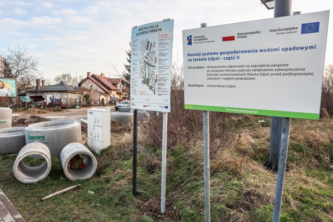Mija siedem miesięcy od podpisania umowy i rozpoczęcia prac na rewitalizowanym osiedlu Meksyk. Gotowe są już m.in. nawierzchnie nowej ulicy, parkingów i pętli autobusowej oraz kanalizacja deszczowa w północnej części ulic Nowodworskiego i Orzechowej. Od maja na osiedlu Meksyk – między ul. Hutniczą a torami kolejowymi – trwa budowa nowych przestrzeni publicznych. To, jak powinny one wyglądać, wskazywali sami mieszkańcy. Odbyło się to na etapie przygotowywania Gminnego Programu Rewitalizacji. By spełnić oczekiwania lokalnej społeczności i poprawić jakość jej życia, gdyński samorząd wystąpił do wojewody o zezwolenie na realizację inwestycji drogowej (ZRID), umożliwiającej wypłatę odszkodowania za przejęcie przez miasto części prywatnych gruntów przeznaczonych pod budowę. – Zmiany na osiedlu Meksyk i prace, które są tam prowadzone, to obecnie jedna z ważniejszych inwestycji, jakie realizujemy w mieście. Nie tylko dlatego, że jest częścią większej całości, czyli rewitalizacji sześciu obszarów miasta. Osiedle wzbogaci się o infrastrukturę, jakiej tu wcześniej nie było. Będzie ona zgodna z zasadami adaptacji do zmian klimatu – podkreśla Michał Guć, wiceprezydent Gdyni ds. innowacji. – Już w 2018 roku powstał ogród deszczowy przy ul. Śliwkowej. Natomiast teraz nawierzchnie ulic i parkingów są wykonywane tak, by część wód opadowych wsiąkała w grunt, np. do muldy w ul. Orzechowej. Reszta będzie trafiać do kanalizacji deszczowej. W tej chwili prace na osiedlu Meksyk są prowadzone między ul. Hutniczą a torami kolejowymi. Obejmują też południową nitkę ul. Hutniczej. Trwają roboty brukarskie na nowej ulicy – położono już nawierzchnię asfaltową w obrębie parkingów. Gotowa jest też betonowa nawierzchnia pętli autobusowej. Zakończono również budowę kanalizacji deszczowej w ciągu ulic Nowodworskiego, Orzechowej i Brzoskwiniowej.Kontynuowana jest budowa kanalizacji deszczowej na ul. Hutniczej. Trwają także prace na ulicach: Dachnowskiego, Nowodworskiego, Orzechowej i Brzoskwiniowej. W obrębie parkingów są stawiane słupy oświetleniowe.W związku z przebudową południowej części ul. Hutniczej (wraz z przebudową kanalizacji deszczowej, elektrycznej i wodociągowej) wprowadzono zmiany w organizacji ruchu:* nitka ul. Hutniczej w kierunku Gdyni – na odcinku ul. Palmowej i ul. Dachnowskiego – jest zamknięta. Ruch w obie strony odbywa się nitką w kierunku Rumi, po jednym pasie w każdą ze stron. Obowiązuje tu ograniczenie prędkości i zakaz wyprzedzania.* przystanek autobusowy „Gruszkowa 01” przeniesiono przed skrzyżowanie ulic Hutniczej i Palmowej. Dojście do stacji Gdynia Chylonia – przez ul. Palmową.* wzdłuż ul. Hutniczej – na odcinku ul. Palmowej i ul. Dachnowskiego – zapewniono ciąg pieszy o szerokości m.in. 1,5 metra, który jest przesuwany zgodnie z postępem robót.* z ul. Hutniczej nie można wjechać na ul. Orzechową, Nowodworskiego i Dachnowskiego. Dojazd odbywa się ul. Wiśniową.Prace rewitalizacyjne na osiedlu Meksyk obejmują m.in.:* budowę nowej drogi – równoległej do ul. Orzechowej – z chodnikami, oświetleniem, infrastrukturą podziemną, zielenią i elementami małej architektury,* przebudowę ul. Orzechowej,* zagospodarowanie terenu przy stacji Gdynia Chylonia. Powstaną parkingi dla samochodów i rowerów, pętla autobusowa, nowe jezdnie, chodniki, oświetlenie, sieci kanalizacyjne, zieleń,* wybudowanie kanalizacji deszczowej na odcinku ul. Nowodworskiego przez ul. Palmową,* przebudowę fragmentu ul. Hutniczej wraz z budową sygnalizacji świetlnej.Wszyscy, którzy chcą porozmawiać o rewitalizacji osiedla Meksyk, mogą połączyć się online z Agnieszką Dalecką z Działu Inwestycji Laboratorium Innowacji Społecznych. W grudniu będzie ona dyżurować na platformie Zoom:* w środy: 22 i 29.12 w godz. 9.00-11.00,* w czwartki: 16, 23, 30 w godz. 16.00-17.30.Link do spotkania zostanie przysłany e-mailem lub na wybrany komunikator – po uzgodnieniu daty i godziny. Spotkanie można umówić:* telefonicznie: 58 727 39 06 (Dział Inwestycji Laboratorium Innowacji Społecznych),* mailowo: a.dalecka@lis.gdynia.pl, rewitalizacja@lis.gdynia.pl* przez Messenger GdyniaOdNowa lub poprzez wydarzenie na portalu Facebook.Projekt „Rozwój systemu gospodarowania wodami opadowymi na terenie Gdyni – część II” jest realizowany dzięki dofinansowaniu z Funduszu Spójności w ramach Programu Operacyjnego Infrastruktura i Środowisko 2014-2020, działanie 2.1 Adaptacja do zmian klimatu wraz z zabezpieczeniem i zwiększeniem odporności na klęski żywiołowe, w szczególności katastrofy naturalne oraz monitoring środowiska; typ projektu 2.1.5 Systemy gospodarowania wodami opadowymi na terenach miejskich. Galeria zdjęć Pobierz galerię Inwestycja rewitalizacyjna na osiedlu Meksyk // fot. Karolina Misztal-Świderska Pobierz zdjęcie Inwestycja rewitalizacyjna na osiedlu Meksyk // fot. Karolina Misztal-Świderska Pobierz zdjęcie Inwestycja rewitalizacyjna na osiedlu Meksyk // fot. Karolina Misztal-Świderska Pobierz zdjęcie Inwestycja rewitalizacyjna na osiedlu Meksyk // fot. Karolina Misztal-Świderska Pobierz zdjęcie Inwestycja rewitalizacyjna na osiedlu Meksyk // fot. Karolina Misztal-Świderska Pobierz zdjęcie Inwestycja rewitalizacyjna na osiedlu Meksyk // fot. Karolina Misztal-Świderska Pobierz zdjęcie Inwestycja rewitalizacyjna na osiedlu Meksyk // fot. Karolina Misztal-Świderska Pobierz zdjęcie Inwestycja rewitalizacyjna na osiedlu Meksyk // fot. Karolina Misztal-Świderska Pobierz zdjęcie Inwestycja rewitalizacyjna na osiedlu Meksyk // fot. Karolina Misztal-Świderska Pobierz zdjęcie Inwestycja rewitalizacyjna na osiedlu Meksyk // fot. Karolina Misztal-Świderska Pobierz zdjęcie Inwestycja rewitalizacyjna na osiedlu Meksyk // fot. Karolina Misztal-Świderska Pobierz zdjęcie Osiedle Meksyk // fot. Karolina Misztal-Świderska P