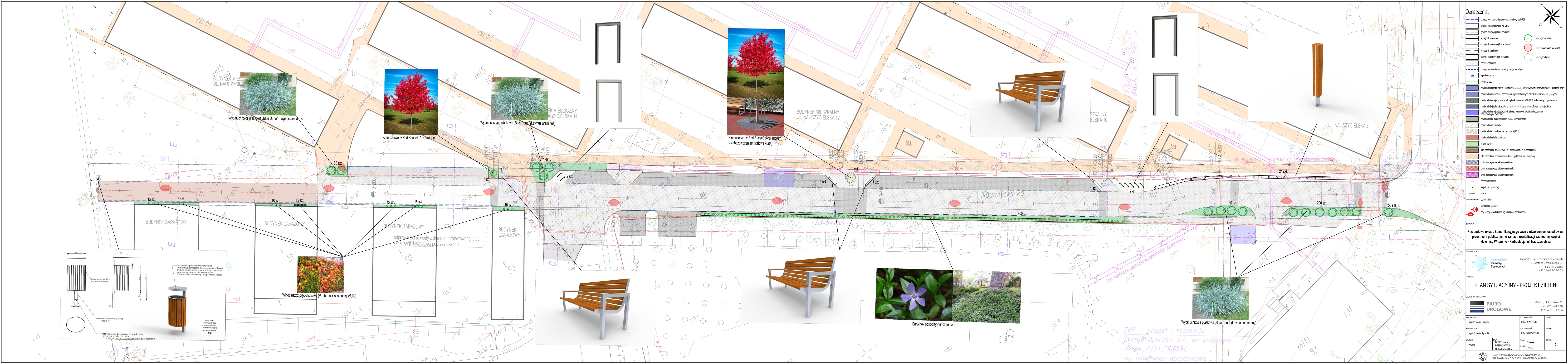 W poniedziałek, 27 lutego, rozpocznie się przygotowywanie terenu przy ul. Nauczycielskiej Witominie tak, by mogła rozpocząć się tam inwestycja polegająca na poprawie bezpieczeństwa i uporządkowaniu sposobu parkowania. By inwestycja była kompleksowa, gmina Gdynia porozumiała się ze Spółdzielnią Mieszkaniową Bałtyk co do spełnienia potrzeb parkingowych mieszkańców tej części dzielnicy. Ulica Nauczycielska na rewitalizowanym fragmencie Witomina to typowa ulica osiedlowa. Wąska, po obu stronach zastawiona parkującymi samochodami - gdy budowano osiedle przewidziano niewiele miejsc parkingowych. Po obu stronach ulicy rosną drzewa: z jednej strony na terenie szkoły, z drugiej na pasie zieleni, który oddziela jezdnię i chodnik. Mieszkańcy pozostawiają swoje auta wzdłuż krawężników, po obu stronach. To sprawia, że kłopot z przejechaniem zwężoną ulicą mają np. śmieciarki, a minięcie się samochodów jadących w przeciwnych kierunkach jest niemożliwe. Wąska ulica jest niebezpieczna dla pieszych i rowerzystów.Problem – a raczej potrzeba jego rozwiązania – powracał jak bumerang podczas prac nad Gminnym Programem Rewitalizacji, którym Witomino jest objęte. W GPR, jako jedno z zadań dla Witomina, zapisano uporządkowanie parkowania i uspokojenie ruchu na końcowym odcinku ul. Nauczycielskiej. Dzięki temu miałoby powstać wygodne i bezpieczne wejście do lasu.Z drugiej jednak strony - mieszkańcy potrzebują też bezpiecznych i uporządkowanych miejsc do parkowania. Dlatego w końcowym fragmencie ul. Nauczycielskiej, na terenie należącym do gminy wyznaczonych, zostanie 20 miejsc postojowych, w tym dwa dla osób z niepełnosprawnościami. Kolejne 42 miejsca, na mocy wspomnianego porozumienia ze spółdzielnią planowane są na terenie SM Bałtyk po północnej części bloków. Docelowo rozważana jest możliwość zlokalizowania na tym terenie około 60 takich miejsc.Na kształt inwestycji mieli wpływ mieszkańcy. Latem 2019 roku, podczas spotkania konsultacyjnego zorganizowanego w Miejskim Klubie Seniora „Witomino” przedstawiciele Laboratorium Innowacji Społecznych oraz projektant przedstawili mieszkańcom koncepcję zmian na Nauczycielskiej i zapytali ich o opinię.Koncepcja przewidywała utworzenie strefy zamieszkania – co daje priorytet pieszym, wyniesienie i miejscowe przewężenie jezdni, co wiąże się ze spowolnieniem i poprawą bezpieczeństwa ruchu. Chodziło o podkreślenie lokalnego, kameralnego charakteru ulicy. Mieszkańcy tymczasem postulowali poszerzenie Nauczycielskiej i wyznaczenie nowych miejsc postojowych – nawet kosztem wycinki wszystkich drzew rosnących po jednej stronie ulicy. - Nie ma wątpliwości co do potrzeby zmian na ul. Nauczycielskiej, która w tej chwili nie jest bezpieczna i dostępna – mówi Michał Guć, wiceprezydent Gdyni ds. innowacji.W piątek, 24 lutego, podpisał umowę z wykonawcą prac w tej części rewitalizowanego Witomina. Wyłoniona w przetargu firma HYDRO-MAG sp. z o.o. na przeprowadzenie prac ma osiem miesięcy od dnia przekazania terenu budowy. Koszt przebudowy to 1 802 822,96 zł.Wiceprezydent wraca uwagę, że planując zmiany na ul. Nauczycielskiej konieczne było pogodzenie oczekiwań mieszkańców (miejsca parkingowe zamiast drzew) z dbałością o istniejącą w mieście zieleń. Wyzwaniem jest fakt, że ul. Nauczycielska jest dość wąska.- Z jednej strony mamy teren szkoły, z drugiej - teren spółdzielni, chodniki oraz pas zieleni, w którym rosną wysokie drzewa. Nie można tego pasa naruszyć, bo to by zaszkodziło drzewom. – zauważa wiceprezydent Guć. - W ramach szerokości, którą dysponujemy, nie uda się wyznaczyć zgodnej z przepisami ulicy i miejsc postojowych po obu jej stronach. Dodatkowe miejsca postojowe, które byłyby zlokalizowane wzdłuż jezdni ul. Nauczycielskiej, musiałyby powodować wycinkę drzew po którejś ze stron. Szanujemy zdanie mieszkańców, ale na tak radykalne rozwiązanie nie możemy się zgodzić. We wrześniu 2020 odbył się drugi etap konsultacji. Podczas spotkania z mieszkańcami przedstawiono koncepcję uwzględniającą część zgłoszonych wcześniej uwag.I tak, ustalono, że ulica Nauczycielska pozostanie dwukierunkowa na całej długości. Będzie strefą zamieszkania - pieszy będzie miał pierwszeństwo przed samochodami, które obowiązywać będzie ograniczenie prędkości do 20 km/h. Bezpieczeństwo pieszych ma zapewnić też m.in. wyniesienie jezdni czy zastosowanie różnych nawierzchni. Poprawę oświetlenia ulicy zapewni osie, nowych latarni ledowych oraz dwie latarnie oświetlające przejście dla pieszych. - To kompromis między oczekiwaniami mieszkańców, którzy domagali się wycinki nawet wszystkich rosnących tu drzew i utworzenia parkingów a tym, na co mogliśmy się zgodzić planując prace i uwzględniając założenia miejskiej polityki proklimatycznej i projektowania uniwersalnego – podkreśla Michał Guć, wiceprezydent Gdyni ds. innowacji. – Spełnienie oczekiwań mieszkańców wymaga ingerencji w znajdującą się tu zieleń, ale przeprowadzimy ją tylko w niezbędnym zakresie. Usuniemy trzy topole, jedną gruszę i dwie lipy drobnolistne. To niełatwa decyzja ale będą nowe nasadzenia: dwie lipy drobnolistne w pasie ul. Nauczycielskiej i cztery kolejne drzewa - dwie jabłonie ozdobne, wiśnia ptasia i czereśnia północno-japońska przy ul. Hodowlanej. Uwzględniając uwagi mieszkańców, na wysokości bloku nr 14 oraz na wysokości pierwszego budynku garażowego, tuż za drogą publiczną, pojawi się również szlaban, zapewniający m.in. dostęp do garaży tylko dla ich użytkowników.Prace przygotowawcze do przebudowy ul. Nauczycielskiej, związane z uporządkowaniem zieleni rozpoczynają się w poniedziałek, 27 lutego.Projekt Gdynia odNowa: Rewitalizacja zachodniej części dzielnicy Witomino-Radiostacja jest współfinansowany ze środków Unii Europejskiej w ramach Regionalnego Pro