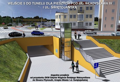 Wizualizacje ilustrują: - tunel dla pieszych pod ul. Władysława IV i ul. Świętojańską - bezpieczne przejście od przystanku kolejowego SKM Wzgórze Św. Maksymiliana do Skweru Plymouth, długość tunelu - 100 m; - tunel drogowy łączący Drogę Gdyńską z al. Zwycięstwa - bezkolizyjny zjazd z Drogi Gdyńskiej do centrum miasta;- kładkę pieszo-rowerową nad wyjazdem z tunelu drogowego łączącego Drogę Gdyńską z al. Zwycięstwa; - wejścia do tunelu dla pieszych pod ul. Władysława IV i ul. Świętojańską - bezpieczne przejście od przystanku SKM Gdynia Wzgórze św. Maksymiliana do ul. Władysława IV, ul. Świętojańskiej i Skweru Plymouth;- całkowity układ drogowy Węzła św. Maksymiliana po przebudowie. Autorem wizualizacji jest firma "FMD 3D Grzegorz Fikus". Opublikowano: 10.05.2010 00:00 Autor: Lidia Rumel-Czarnowska (l.rumel-czarnowska@gdynia.pl.deleted)